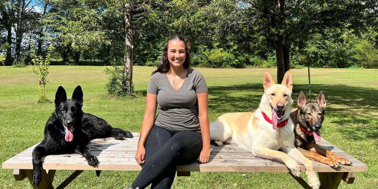 My name is Isabella McCaw I am local to the Leesville/Lexington area. My goal is to help clients all around the Midlands achieve their goals with their dogs by using balanced training techniques that work. It is important to know that not 1 size fits all dogs. Each training program is specific to the dog in front of me, and tailored to meet their specific needs. I enjoy taking the time with each individual client and dog. It’s very rewarding to see the dogs and owners I work with improve their skills and relationships with each other through training. I have experience working hundreds of pet dogs with basic/advanced obedience on and off leash. As well as some behavior modification/aggression cases. I own 4 dogs with my significant other we combined own (3 German Shepherds & 1 Belgian Malinois). We currently are living the farm life on 25 acres with so many animals we care for goats, cows, chickens, and pigs! I definitely have a strong love for all animals that keep me busy!